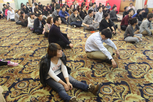 学员席地而坐认真听讲